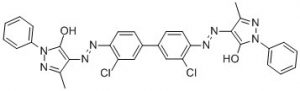 Cheminis pavadinimas: 4,4 '- [[3,3' - dichlor (1,1 '- bifenil) - 4,4' - diil] bis (azo)] bis [2,4-dihidro-5-metil-2 - (4-metil) - 3h-pirazol-3-onas] Molekulinė formulė: c34h28cl2n8o2