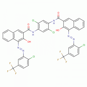 Angliškas slapyvardis: Pigmentas raudonas 242; PR242; Sandorino Scarlet 4RF; 2-naftalenkarboksamidas, N, N ’- (2,5-dichlor-1,4-fenilen) bis- [4 - [[2-chlor-5- (trifluormetil) fenil] azo] -3-hidroksi-3-hidroksi -; (4Z, 4'E) -N, N '- (2,5-dichlorbenzen-1,4-diil) bis (4 - {[2-chlor-5- (trifluormetil) fenil] hidrazonono} -3-okso- 3,4-dihidronaftalen-2-karboksamidas); 4- [2-chlor-5- (trifluormetil) fenil] azo-N- [2,5-dichlor-4 - [[4- [2-chlor-5- (trifluormetil) fenil] azo-3-hidroksi-naftaleno -2-karbonil] amino] fenil] -3-hidroksi-naftalen-2-karboksamido; N, N ’- (2,5-dichlor-1,4-fenilen) bis [4 - [[2-chlor-5- (trifluormetil) fenil] azo] -3-hidroksinaftalen-2-karboksamidas] CAS numeris: 52238 -92-3